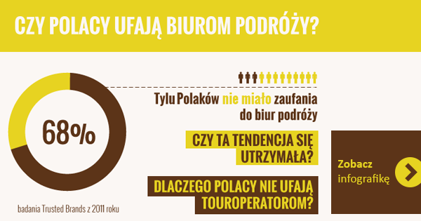 Polecamy zerknąć na infografikę, która porusza temat biur podróży i zaufania do nich. Znajdziemy tu informacje o tym ile osób nie ufa biurom, dlaczego i jak się ustrzec przed kupnem wycieczki w nieodpowiednim miejscu.